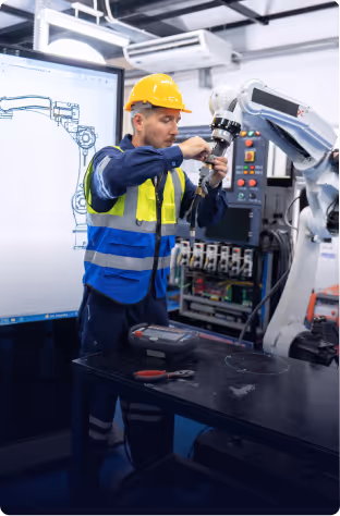 Progettiamo logiche di controllo per linee di produzione automatizzate e sistemi robotici collaborativi (Cobots). Ci occupiamo dello sviluppo di Software PLC, dell'integrazione di sistemi di visione artificiale e della comunicazione tra macchine tramite protocolli industriali standard. L'obiettivo è l'ottimizzazione del throughput produttivo e la riduzione dei tempi di fermo macchina.